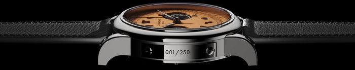 本モデルは、わずか250本のみ生産されるリミテッドエディション。すべての個体にシリアルナンバーが刻印される、特別仕様となっています。最大の特徴は、温かみのあるサーモンダイヤルに堂々と配されたアラビア語の数字インデックスです。ポリッシュ仕上げの立体的なアプライド仕様により、光を受けて美しく輝き、クラシックでありながら力強い印象を演出。ブラックの“パンダ”サブダイヤルとのコントラストが視認性を高め、デザインに明快なリズムを与えています。マッチングされた針とともに、実用性と存在感を兼ね備えたフェイスを完成させました。