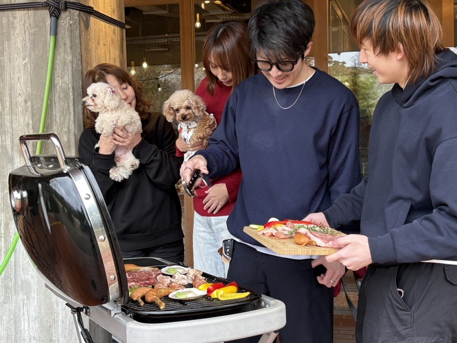 明石公園を散歩する犬と一緒に利用できる点も、本BBQの魅力のひとつです。犬同伴で食事を楽しめる場所が限られる中、愛犬とともに同じ時間を過ごせる環境を整えています。