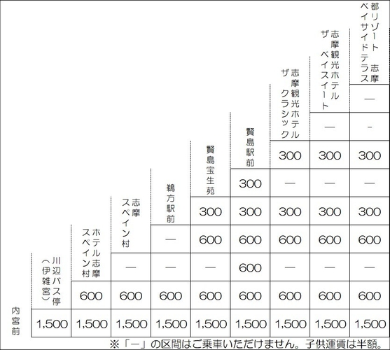 〇賢島宝生苑⇔志摩スペイン村など、志摩エリア内における乗降が可能となります