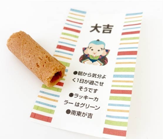 ロールフォーチュンクッキーも、おみくじ入りのお菓子として、その楽しさを大切にしています。