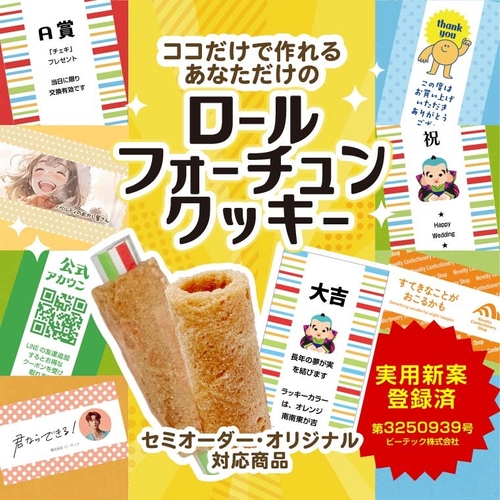 ノベルティ菓子専門ECサイト「ノベルティのお菓子屋さん」(運営:ビーテック株式会社)は、ロール型の新しいフォーチュンクッキー『ロールフォーチュンクッキー』を発売いたしました。