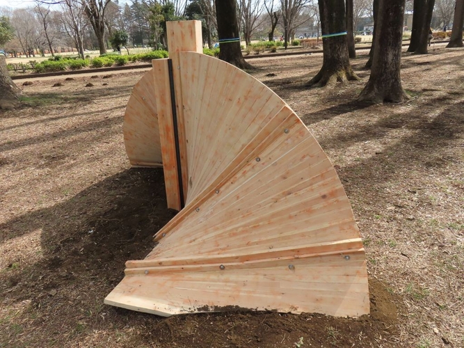 会場となる「いこいの広場」では、作品が林の風景に溶け込みながら来園者を迎えます。早春のやわらかな光や風、刻々と変わる空の色とともに、作品は時間帯や天候によって異なる表情を見せ、訪れるたびに新たな発見があります。自然環境の中でアートと向き合うひとときは、公園ならではの体験です。