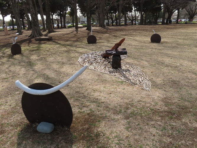 いこいの広場の木立に立体作品を中心としたアート作品を展示します。