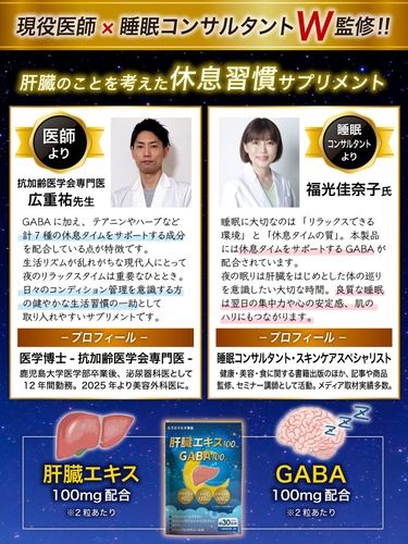 株式会社エス・アール・ケー(本社:静岡県沼津市、代表取締役:下山昇一)は、現役医師(抗加齢医学会専門医)と睡眠コンサルタントによるW監修のもと、肝臓ケア成分と休息サポート成分を配合したハイブリッドサプリメント『肝臓エキス+GABA』 を、2026年3月よりAmazon.co.jpにて販売開始予定です。