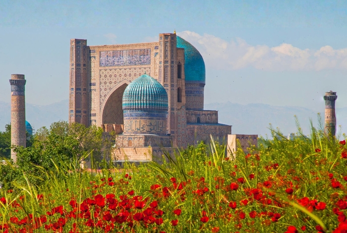 ウズベキスタンを訪れるベストシーズンは、気候が穏やかな春(4〜5月)と秋(9〜10月)。なかでも春は、日中の気温が過ごしやすく、青空の下でサマルカンドやヒヴァの壮麗なイスラム建築が一層美しく映える季節です。街には花や新緑も増え、シルクロードの歴史都市を快適に巡ることができます。観光に最適な気候と景色がそろう春は、ウズベキスタン旅行にぴったりのタイミングです。