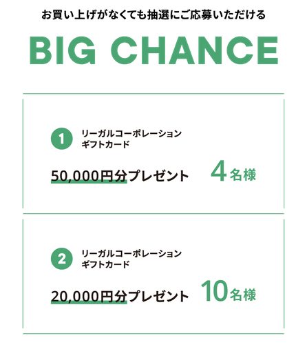 詳しくはこちら : https://www.regal.co.jp/features/detail/regal-shoes/26s-regalweek#wchance