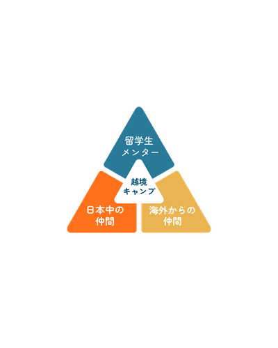 海外大学に進学したメンター約20名と4泊5日を共にしながら、全国各地から集まる「海外・英語・留学」に関心を持つ仲間、さらには海外からの留学生とのディスカッションを通じ、教室では得られない実践的な国際交流を体験できます。また、このプログラムで出会う仲間は、まさに「一生の宝」。同じ志を持つ仲間と出会い、これからの人生を共に切磋琢磨していく。そんなかけがえのない出会いが待っています。