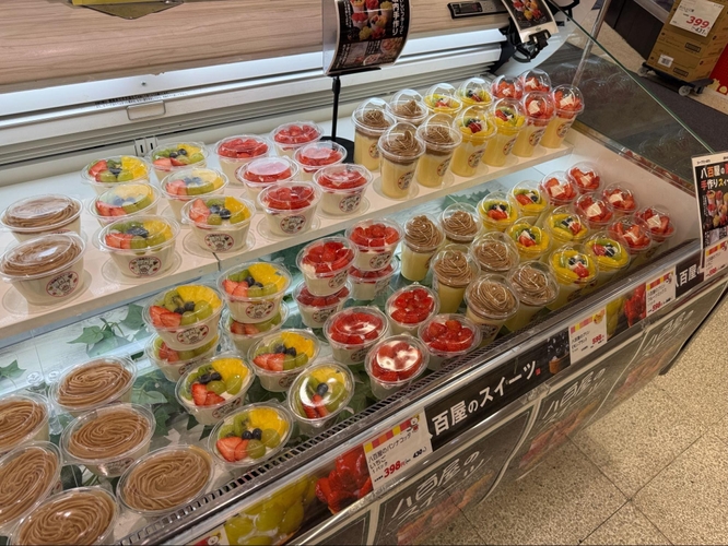 コープさっぽろオリジナルのスイーツブランド「トヨヒコ」の新商品として、売場にある旬の完熟果実とこだわり生クリームを使用し、店内で手作りした商品を新たに投入いたします。農産の売場の果物を使ったフルーツケーキやタルト、プリンやパンナコッタを提供いたします。ホイップクリームはコープさっぽろの牛乳を使って店内で調理しています。現在道内12店舗で提供を開始しており、組合員さんからも「多いと思ったけど意外とペロリと食べられた」「近くにないのでわざわざ置いている店舗に行きました」などの声があがるほど好評です。「八百屋のスイーツ」を二十四軒店に新規で導入します。