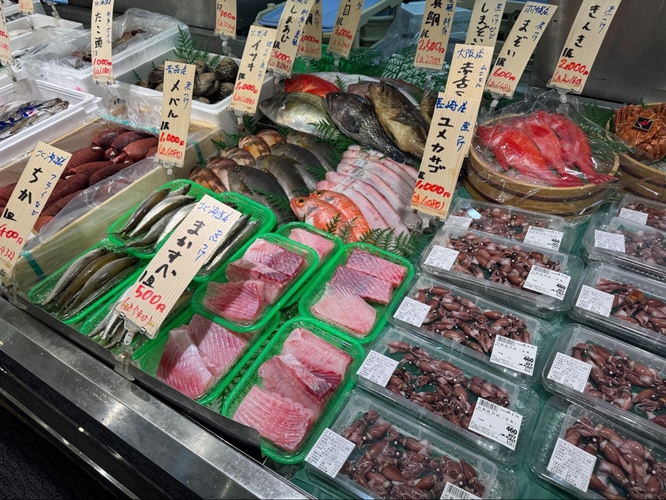 二十四軒店では鮮魚の対面販売を強化いたします。市場が近いことから毎朝市場で仕入れた鮮魚30魚種を目指して販売いたします。ご要望に応じて頭を落としたり、三枚おろしなどに対応いたします。(天候により魚種は変更になる場合もございます)