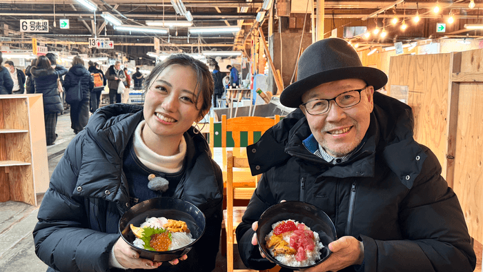 ここは、1965年開場“宮城の台所”とも呼ばれる東北地方最大級の市場。旬の海の幸がずらりと並ぶ市場を楽しむ久住&奥山が、ここならではの、場内で具材を購入して自分たちで作れる「オリジナル海鮮丼」に挑戦!