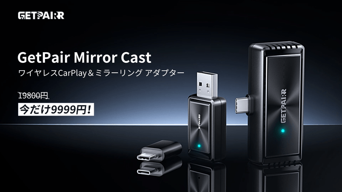 Wireless CarPlayとスマートフォンの画面ミラーリング機能を1台に集約した車載アダプターです。