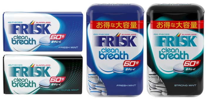 「FRISK クリーンブレス」は、緑茶抽出成分を配合した大粒タブレットで、キレイな息が60分間※持続できるのが特徴です。スタイリッシュなメタルケースで携帯にも便利なので、人との距離が近く息が気になるときに、手軽に口の中をリフレッシュすることができます。