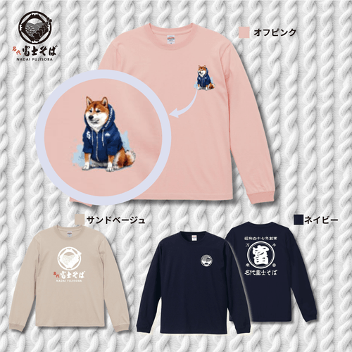 名代富士しば ロンT 春 ネイビー/サンドベージュ/オフピンク 柴犬好きにも|名代富士そば公式通販