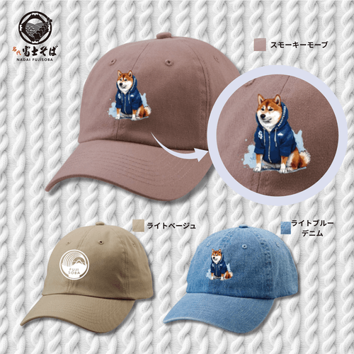 コットンツイル素材の帽子は2025年の発売以来、人気アイテムの一つです。今回はFUJISOBA丼ロゴと名代富士しばの2種類のデザインに、トレンドのくすみカラー3色(スモーキーモーブ、ライトベージュ、ライトブルーデニム)を追加しました。2026年に入り、名代富士しばデザインの人気で女性のお客様が増えたことを考慮したカラー選びです。