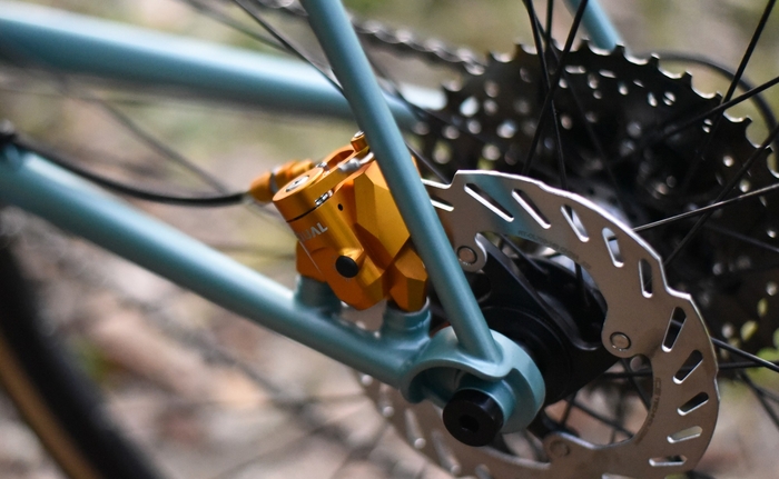 VIGOREでは、それぞれのモデルが担う用途に応じて、ブレーキ方式も選択しています。「Horizon -sen-」では、美しい造形を大切にしながら、舗装路を中心に、時に未舗装路まで含めたフィールドを見据えて、ディスクブレーキを採用しました。距離を重ねるサイクリングを、安心感とともに心地よく支えます。エンドにはUDH規格を採用し、耐久性とメンテナンス性に配慮しました。