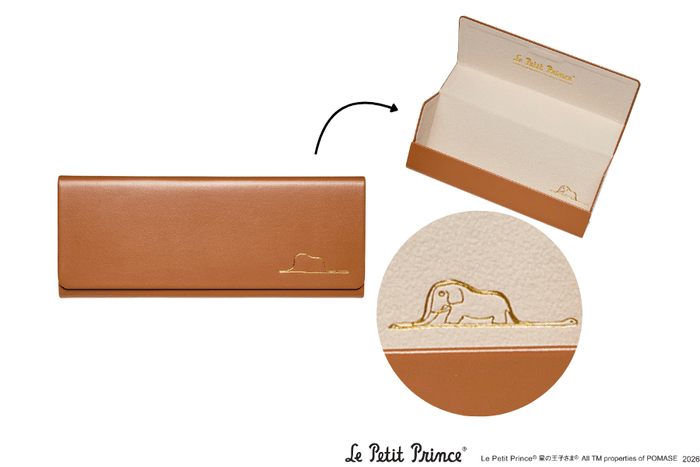 ケースは、物語冒頭にあるパイロットの子どもの頃のお話をモチーフにしたデザインです。外側はただの帽子のように見える模様ですが、中を開くと「ウワバミに飲まれたゾウ」であることがわかるようになっています。