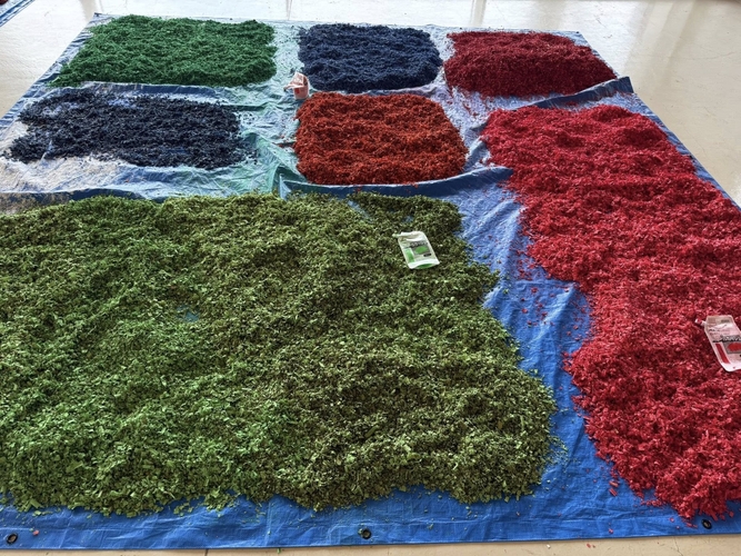 花びらや植物を使った伝統的な「フラワーカーペット」の手法を応用しながら、今回は震災や豪雨で発生した木材チップを画材として再生利用することで、サスティナブルな復興アートとして新たな価値を創出しています。色鮮やかに敷き詰められた木材チップは、単なる装飾ではなく、困難を乗り越える力や再生への願いを込めた象徴的な表現となりました。