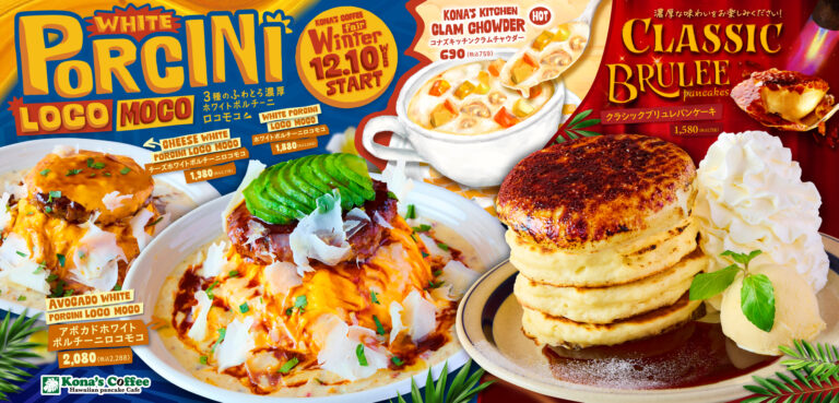 グルメ 【コナズ珈琲】冬こそハワイを感じたい!クレームブリュレをのせた「クラシックブリュレパンケーキ」や濃厚な「チーズホワイトポルチーニロコモコ」が期間限定で発売予定♡