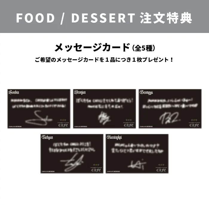 ・フードorデザート注文で、希望メンバーのメッセージカード(1品1枚)