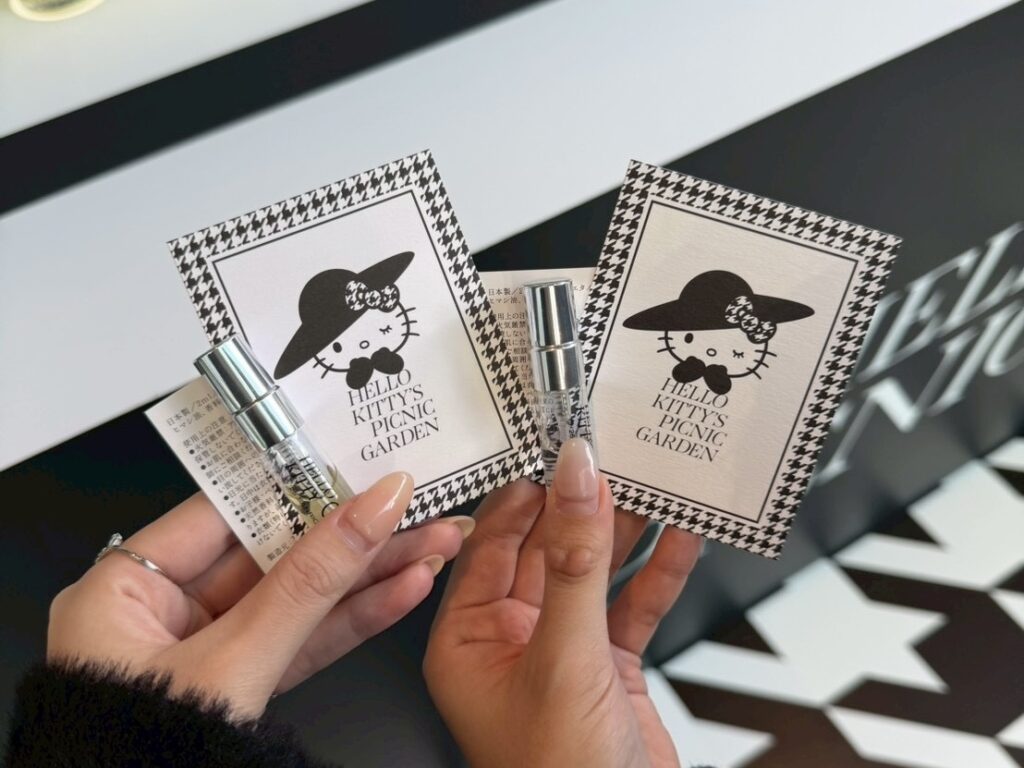 「HELLO KITY’S PICNIC GARDEN」に来場した人限定で、全4種類のフレグランスの中から1つをミニボトルでもらえちゃうよ!