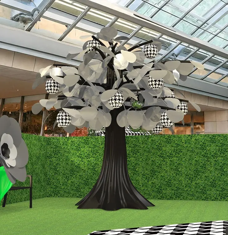中に入るとロンドン出身のプロフィールを持つハローキティにちなんだ、イングリッシュガーデンをイメージした芝生のピクニックエリアになっているよ♡