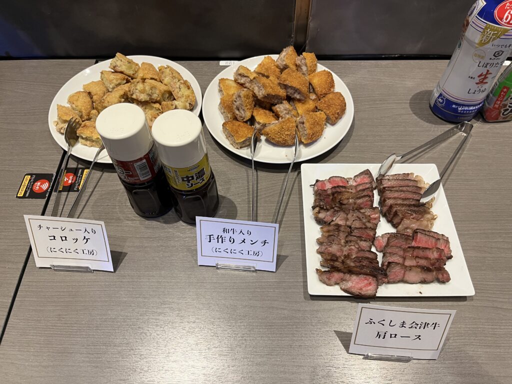 喜多方といえばの「喜多方ラーメン」やそば、塩モツをはじめ、ふくしま会津牛を使ったグルメなど、とっても豪華なビュッフェでした…✨
