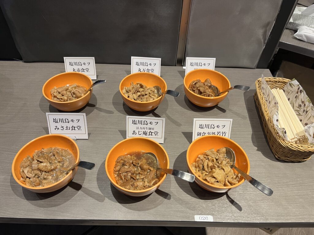 喜多方で大人気の6店舗の塩モツを、贅沢に食べ比べできるんです😲。