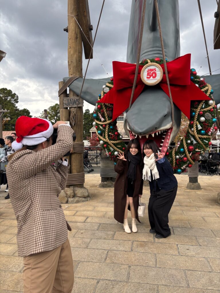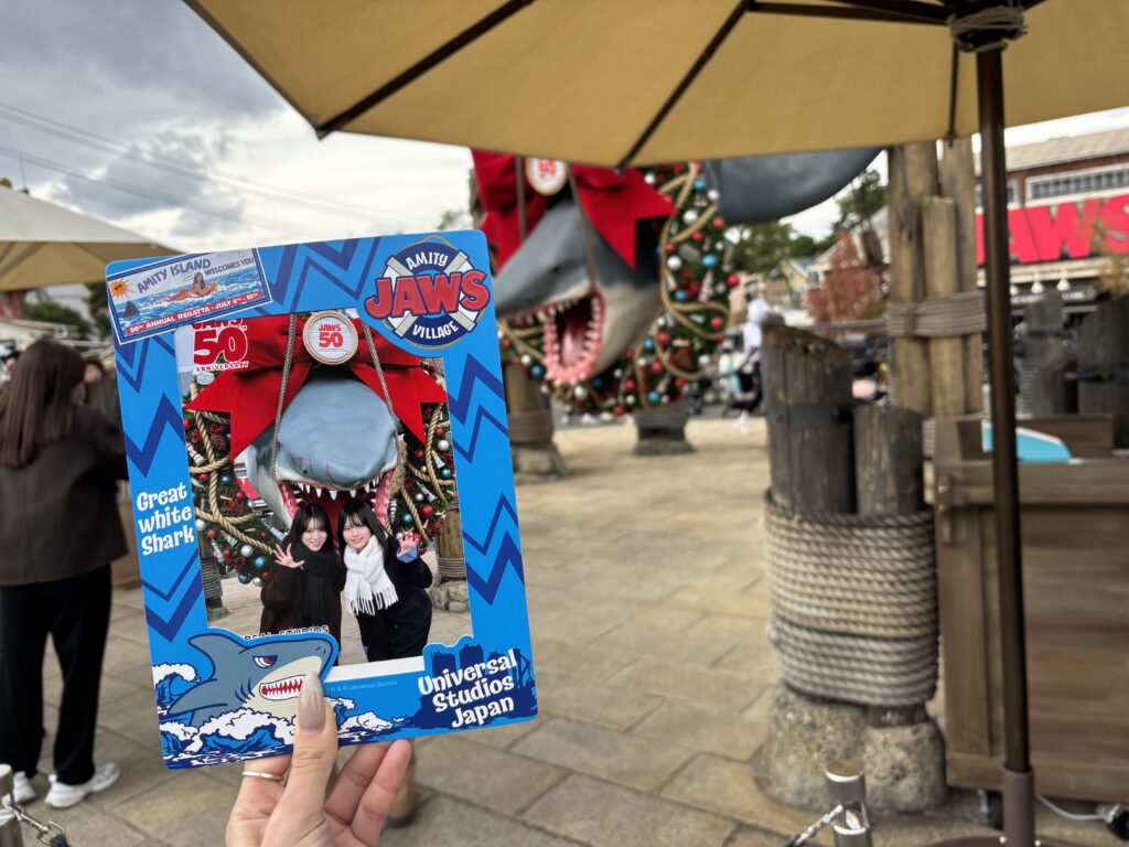 また、ハンギングシャークにクリスマスリースがかかり、『ジョーズ・フォト』も今だけの限定デザインに。📸