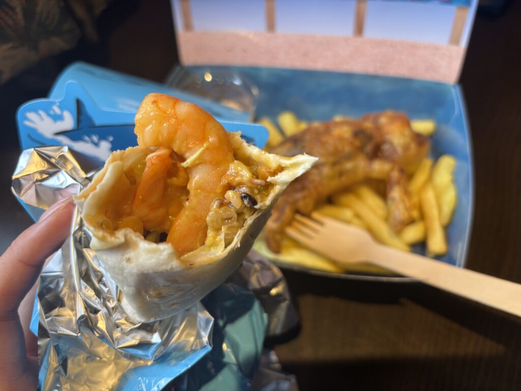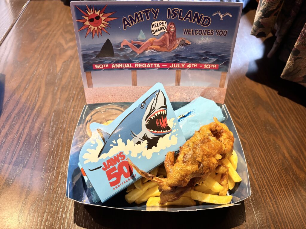 アミティ・ランディング・レストランでは、50周年の記念パッケージになり、ソフトシェルクラブのフライがついたブリトーセットが新登場!✨