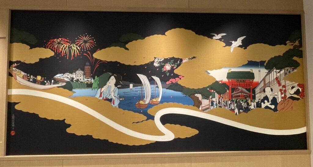「OZ-尾頭-山口佳祐氏」というタイトルのこの絵画は、浅草の“今と昔”を重ね合わせているデザインになっています✨。