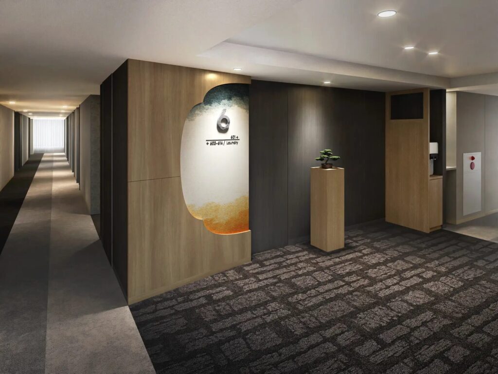 エレベーターホールの床には、浅草の路地の石畳を連想させるカーペットが敷かれています♡