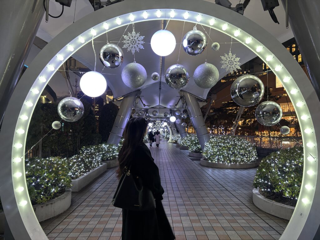 奥まで続く光のトンネルは、まるでスノードームの中へ吸い込まれていくような幻想的な空間…♡