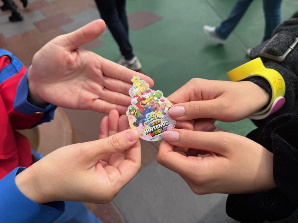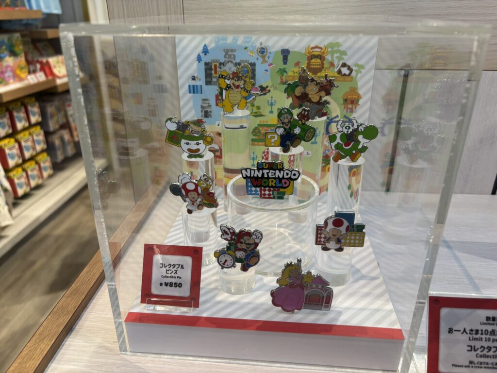 スーパー・ニンテンドー・ワールドの仲間たちのピンバッジがランダムでゲットできちゃうよ。🎶