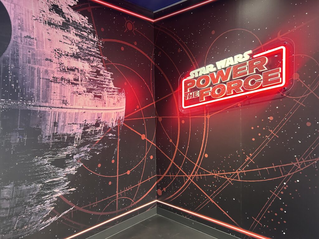 今回のリニューアルでは、店内の「POWER THE FORCE」装飾をブルーからレッドに変更。💥