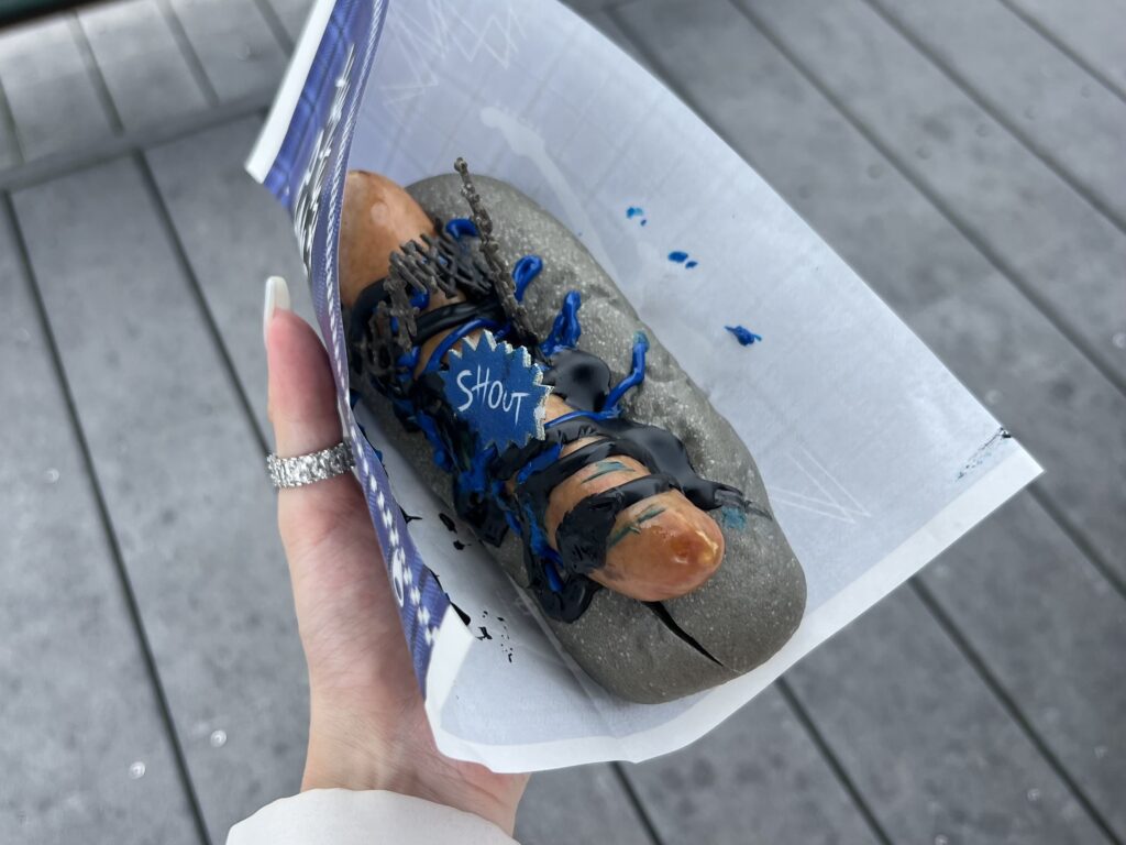 受け取った時のボリューミーさに思わず驚く「ハミクマパンク・ドッグ ~ブラックチーズソース&ペッパー~」💙。